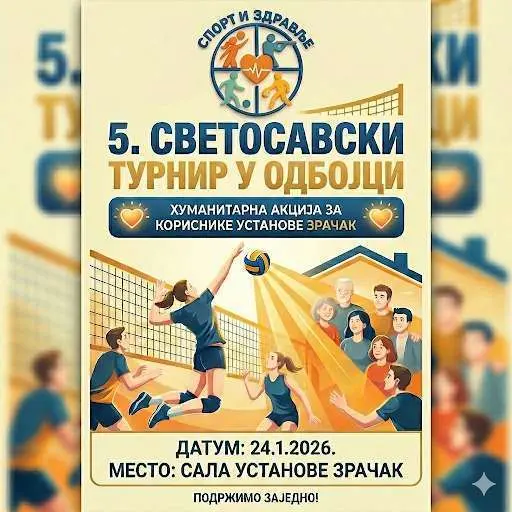 Чачак- Удружење „Спорт и здравље“ из Чачка организује пети по реду Светосавски турнир у одбојци, хуманитарног карактера, који ће бити одржан у суботу, 24. јануара, са почетком у 10 часова,…